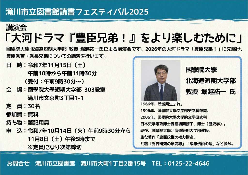 「滝川市立図書館読書フェスティバル2025 講演会「大河ドラマ『豊臣兄弟!』をより楽しむために」」