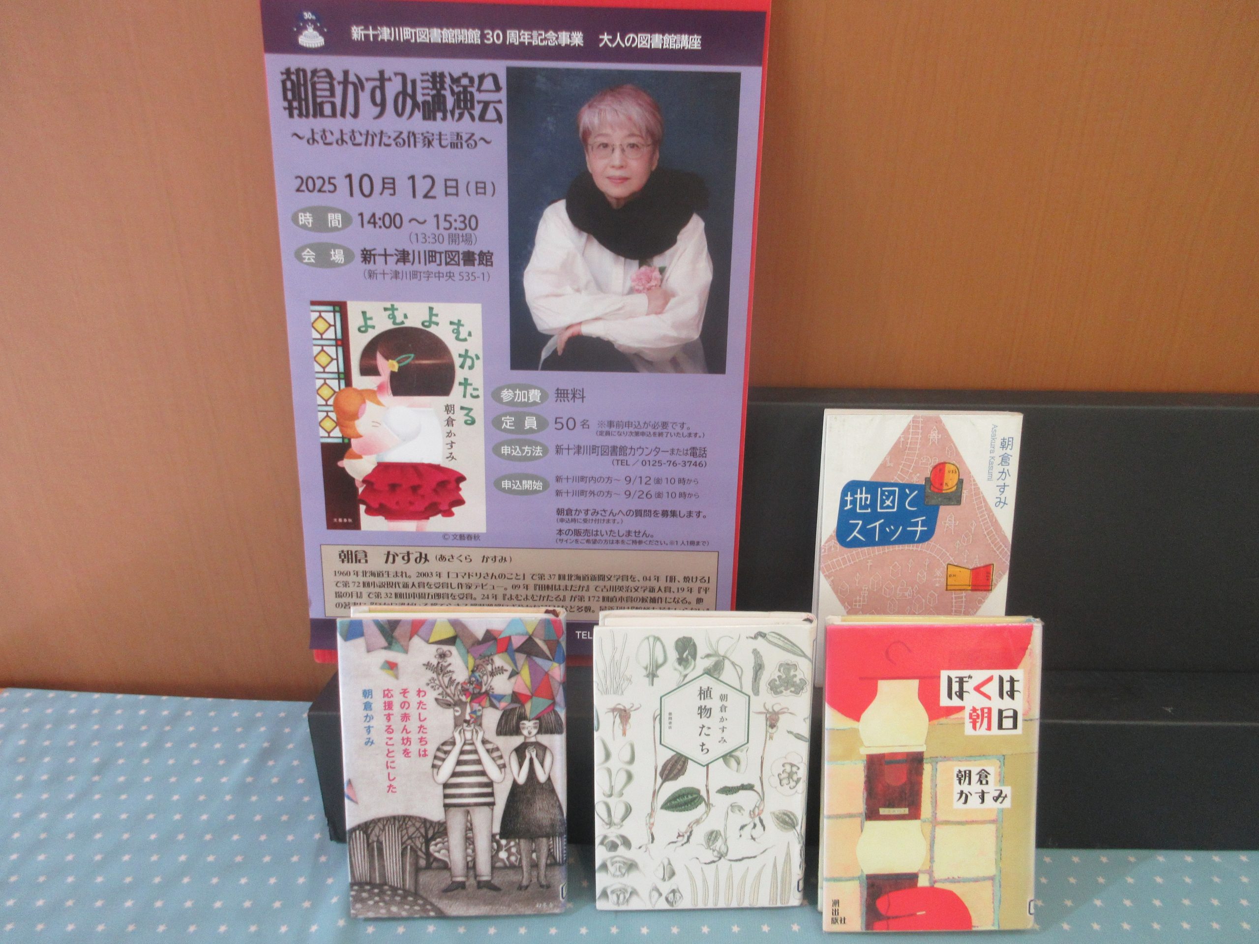 10月12日に新十津川町図書館にて小説家朝倉かすみさんの講演会が開催されます。講演会に先立ち、朝倉かすみさんの著作を展示しています。ぜひご覧ください。