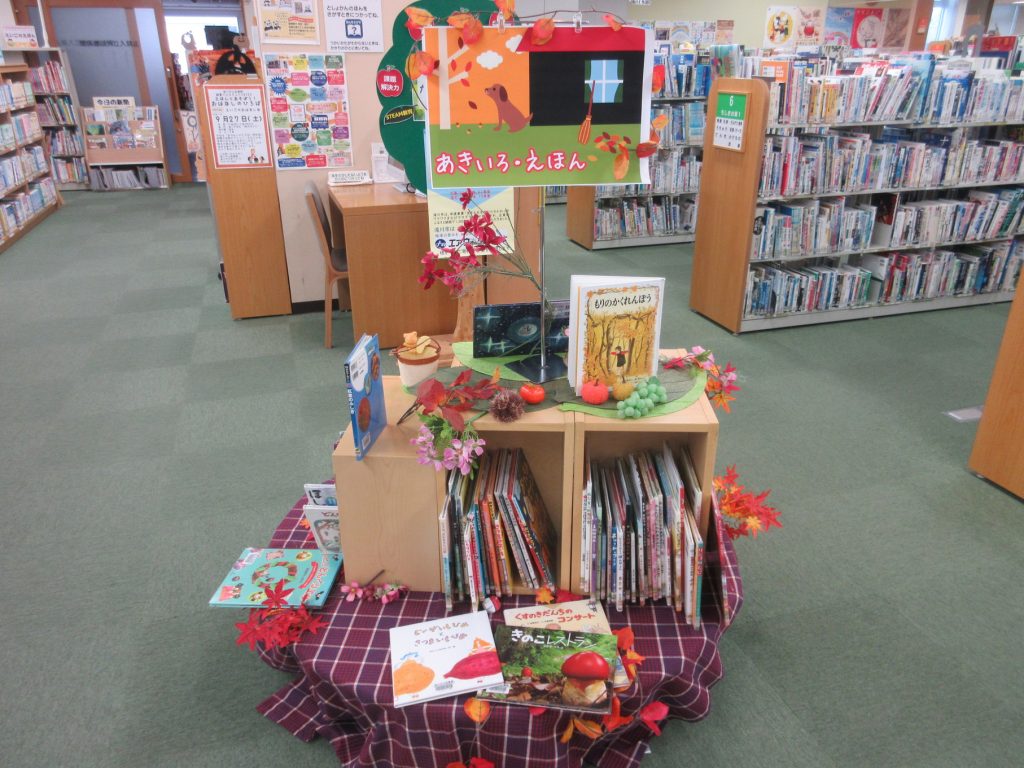 秋を感じられる絵本を集めて展示しています。ぜひご覧ください。