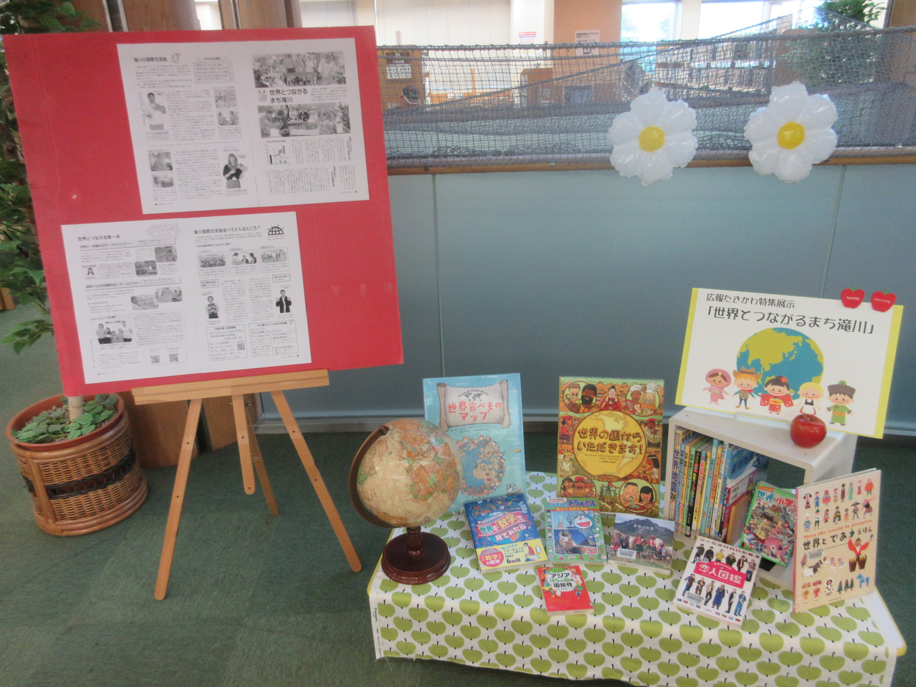 広報たきかわ10月号の特集は「世界とつながるまち滝川」特集にあわせて、世界の国々に関する本を集めて展示しています。