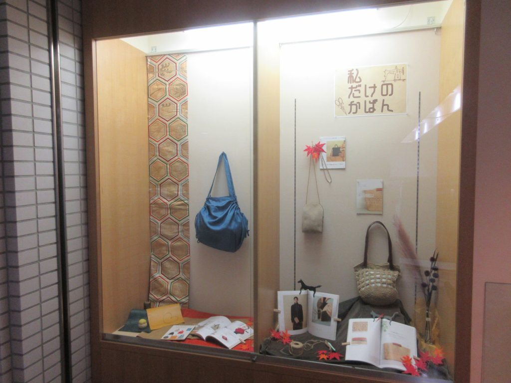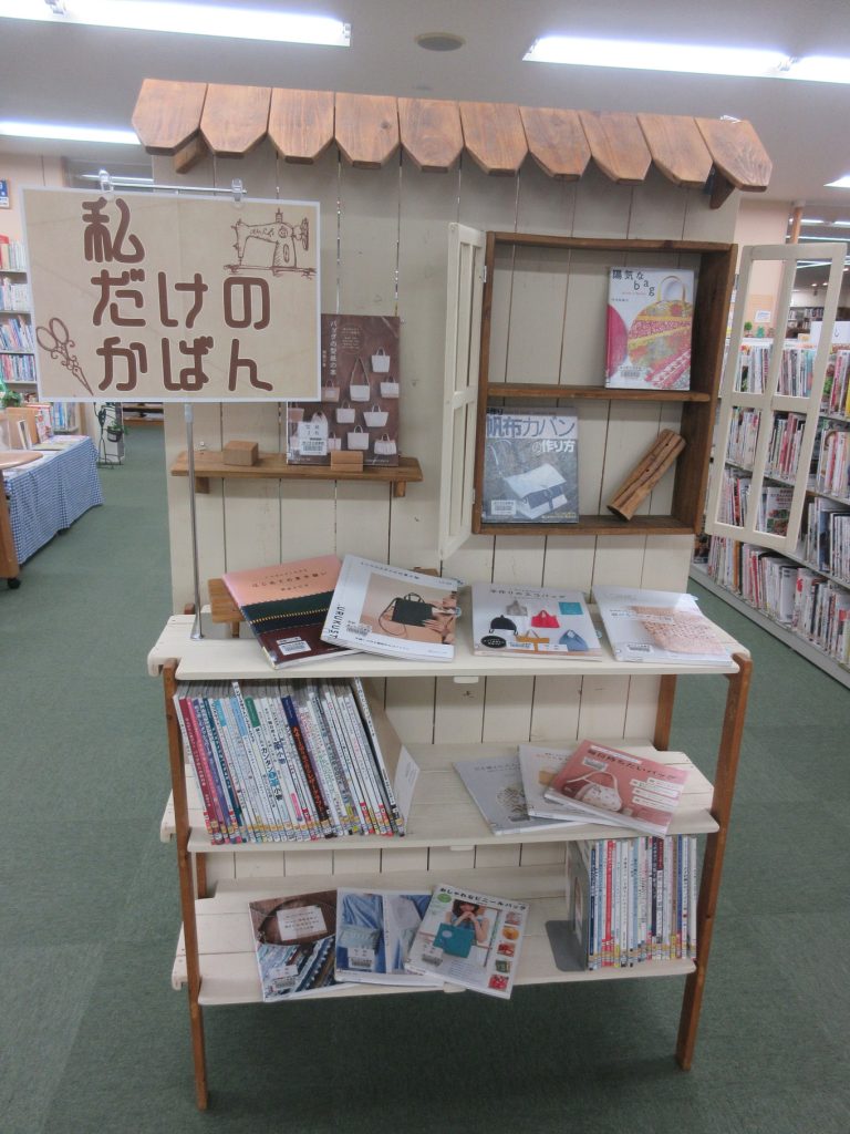 暑さも落ち着き、いろいろな素材を扱いやすい時期になりました。市販品だけでは出会えない世界に一つだけの自分のカバンを作ってみませんか?布、革、麻紐、毛糸、クラフトバンドなど様々な材料を使った普段使いのかばんやエコバッグの作り方の本を展示しています。ガラス展示には実際に本を参考にして作ったバッグを数点展示しています。ぜひご覧ください。