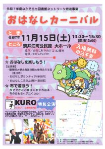 2025年10月21日 ポスター・チラシ 滝川吹奏楽団 第52回定期演奏会 滝吹 2025年10月21日 ポスター・チラシ 令和7年度なかそらち図書館ネットワーク推進事業 おはなしカーニバル 2025年10月18日 お知らせ 生きる力を育むたきかわっ子ワクワクまなびプログラム「第10回滝川市立図書館を使った調べる学習コンクール」作品展を開催します!! 2025年10月6日 お知らせ 「生きる力を育むたきかわっ子ワクワクまなびプログラム『第10回滝川市立図書館を使った調べる学習コンクール』」の審査会が開催されました! 2025年10月4日 2025年度お知らせ展示 10月展示「私だけのかばん」ほか 2025年10月1日 2025年度イベントお知らせ 「滝川市立図書館読書フェスティバル2025 講演会「大河ドラマ『豊臣兄弟!』をより楽しむために」」 2025年10月1日 2025年度イベントお知らせこども 滝川市立図書館読書フェスティバル2025 2025年10月1日 お知らせにんきランキング にんきランキング 2025年9月29日 2025年度こども 「えほんとあそぼう!『おはなしのひろば』」を開催します! 1 2 » 展示 連携の取り組み 雑誌ささえ隊 まちなかコンシェルジュ ランキング こんなとき読みたい3冊 おすすめの本 ポスターチラシ掲示板